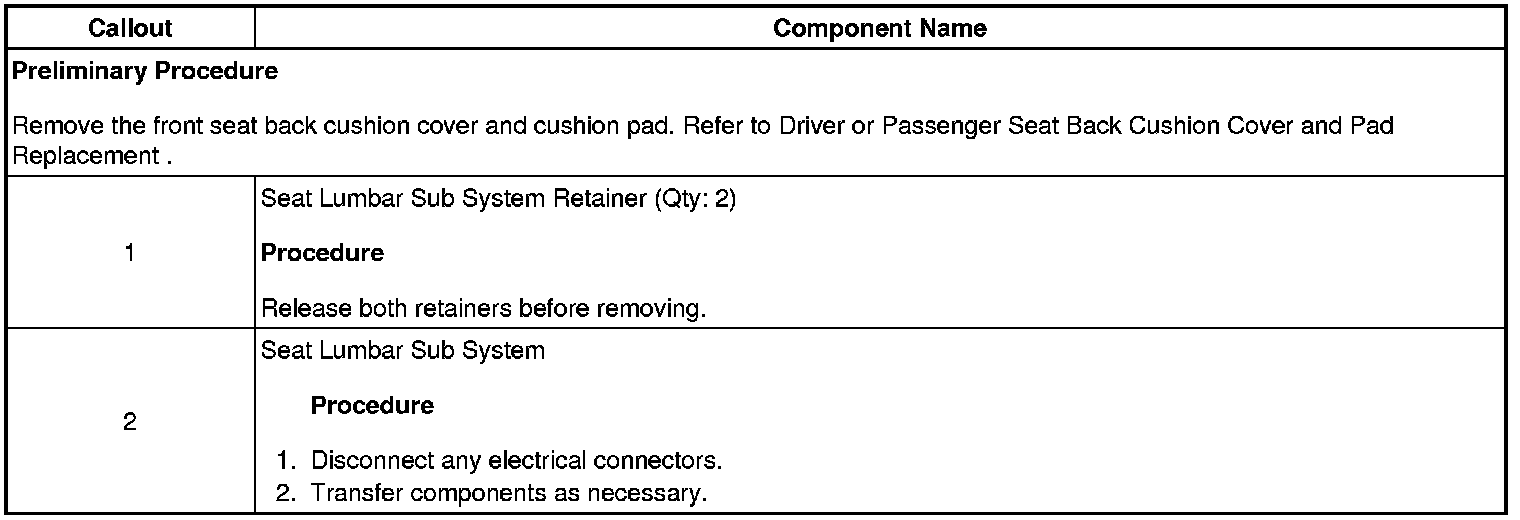Seat Lumbar Sub System Replacement