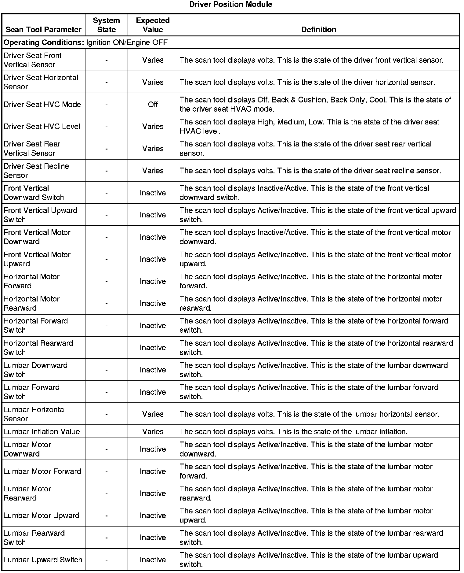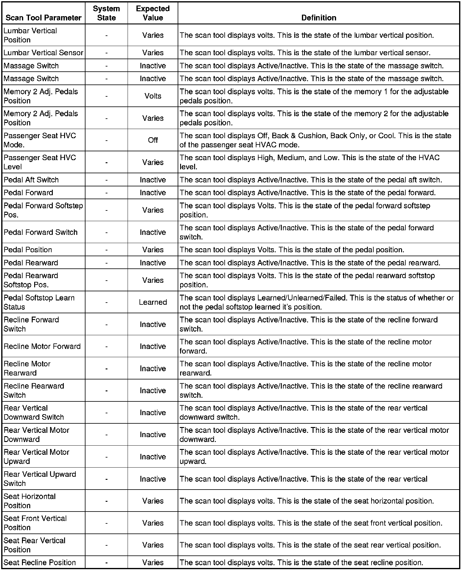 Driver Seat Adjuster Memory Module Scan Tool Information