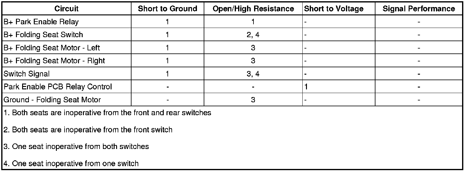 If one of the folding seats is inoperative from both the front and rear folding seat switches, refer to Folding Seat Motor Circuit Test.