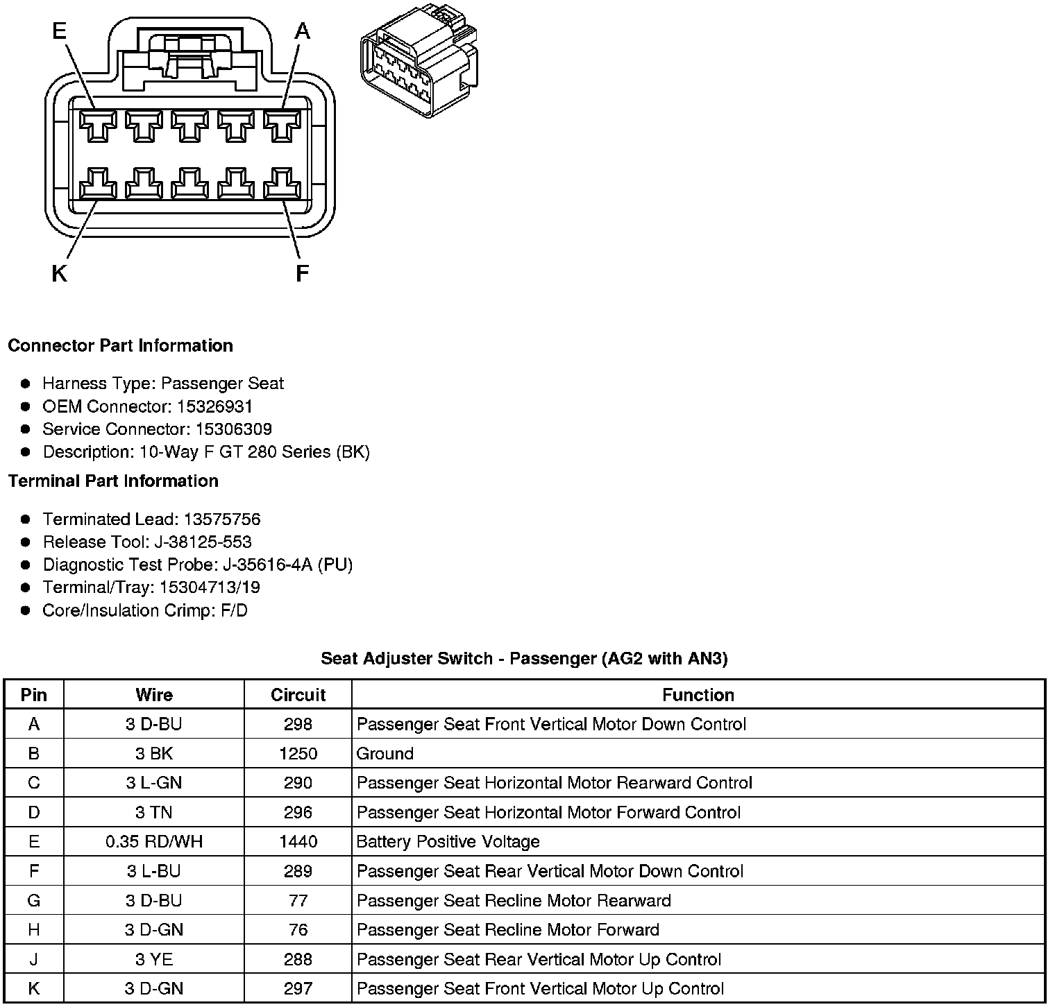 Seat Adjuster Switch - Passenger (AG2 with AN3)