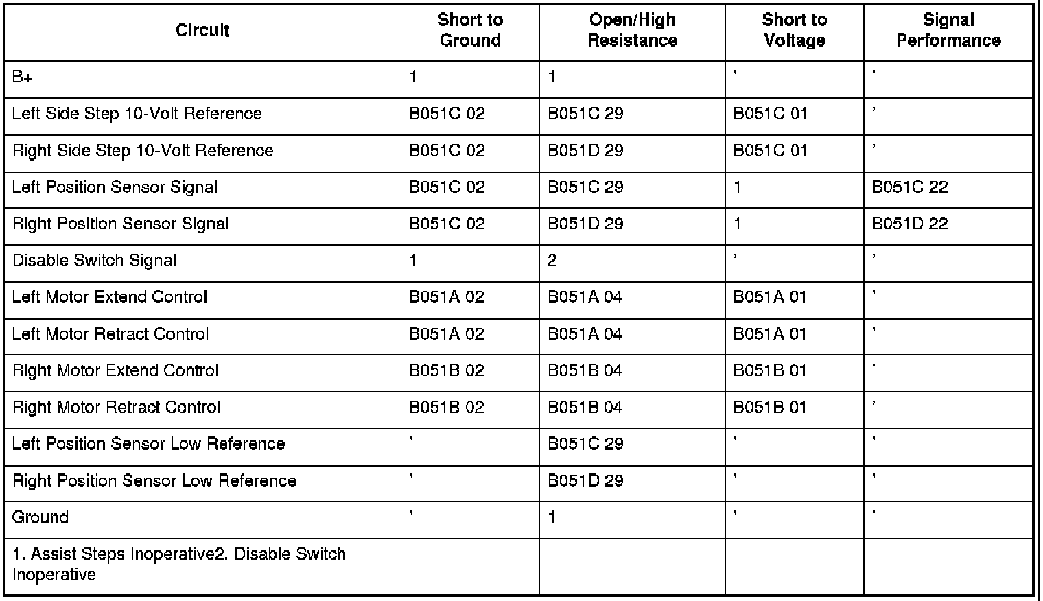 DTC B051A 01:Left Side Assist Step Motor Control Circuit Short to Battery
