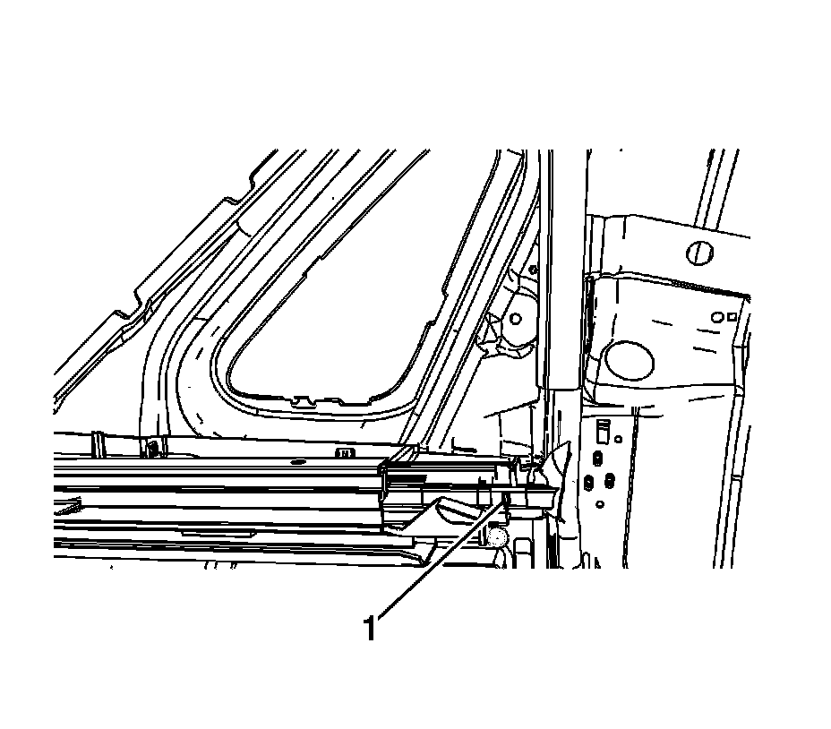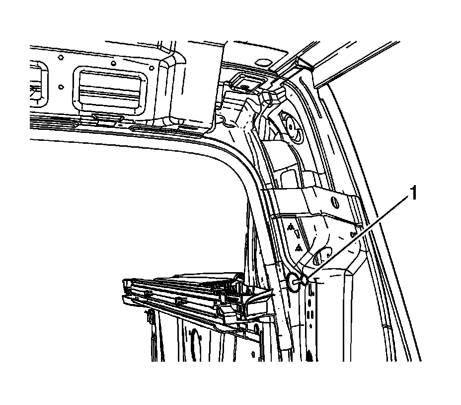 7. If the seal is completely removed from the cargo box, then reinstall the seal with the molded arrow (1) mark positioned in line with the metal rail edge as shown.