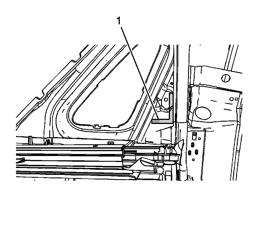 5. Continue applying butyl rope up along area (1) for approximately 80 mm (3 1/8 in) then fold butyl over itself and apply down area (1).