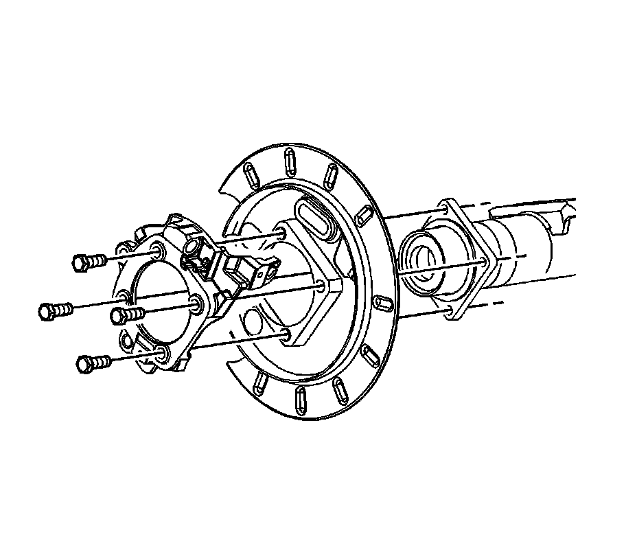 2. Install the park brake backing plate. Refer to Rear Parking Brake Anchor Backing Plate Replacement Service and Repair.