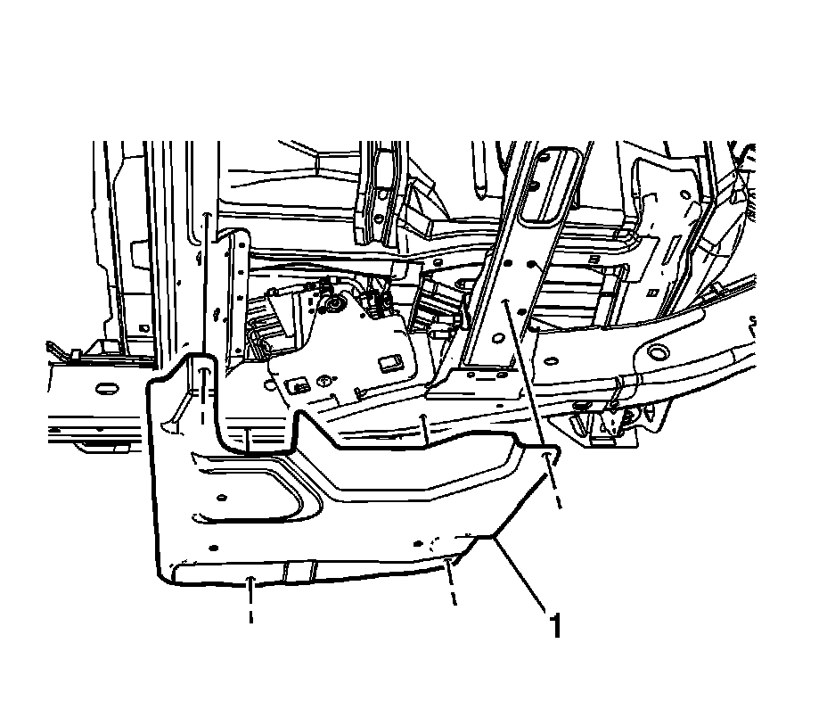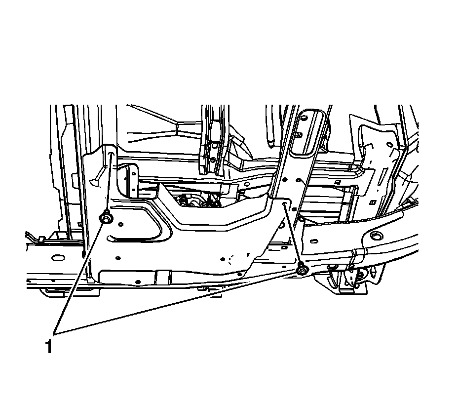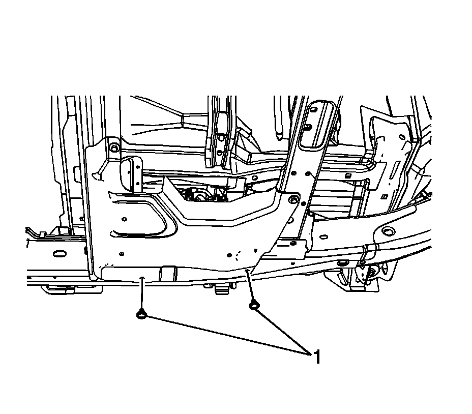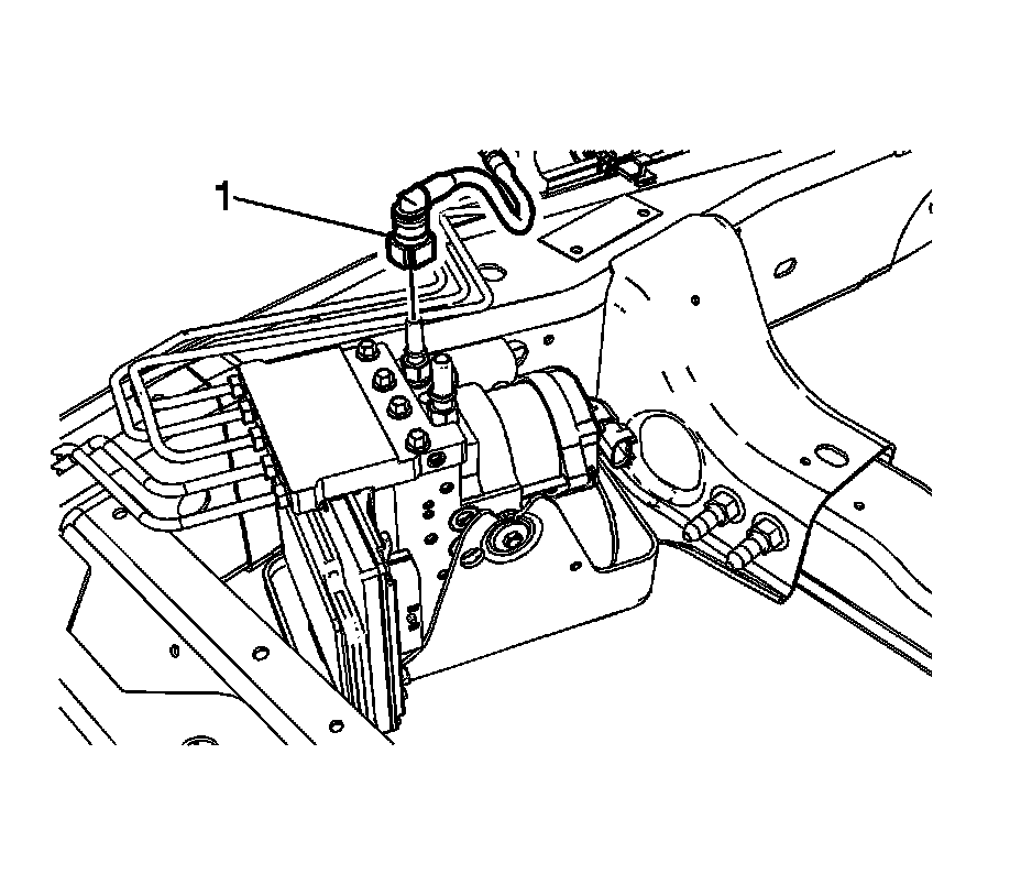 5. Install the ABS module splash shield bolts (1) and tighten to 20 Nm (15 lb ft).