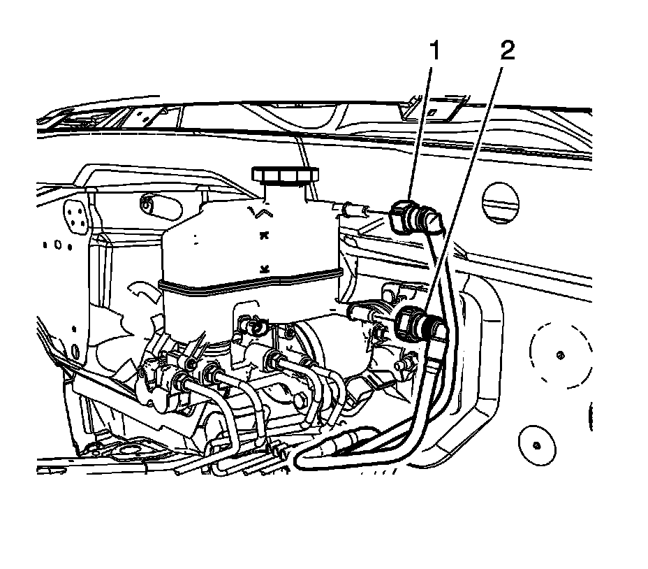 9. Connect the brake master cylinder reservoir supply hose quick connect (2).