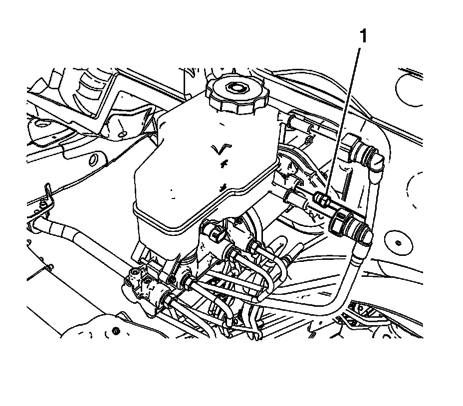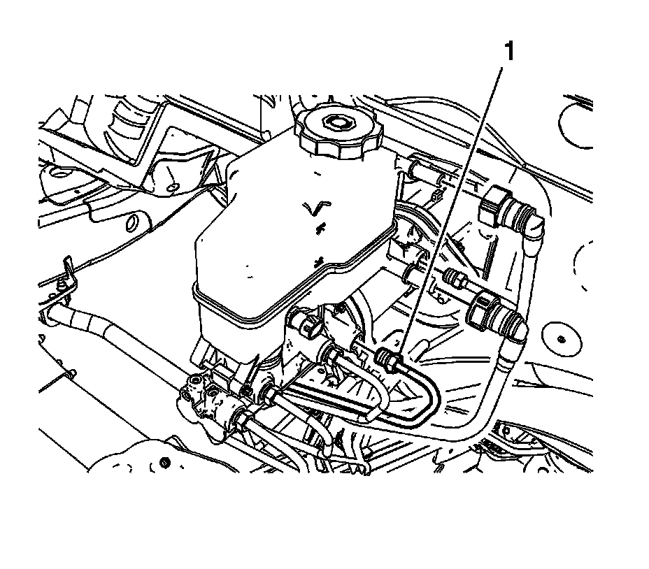 7. Disconnect the brake master cylinder primary brake pipe fitting (1).