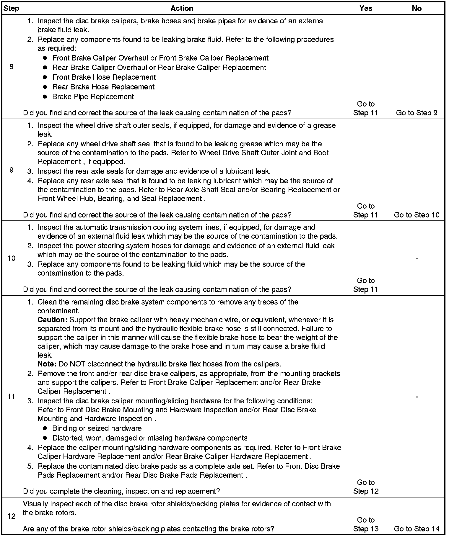 12. Disc brake rotor shields/backing plates that come in contact with disc brake rotors may cause brake system noise.