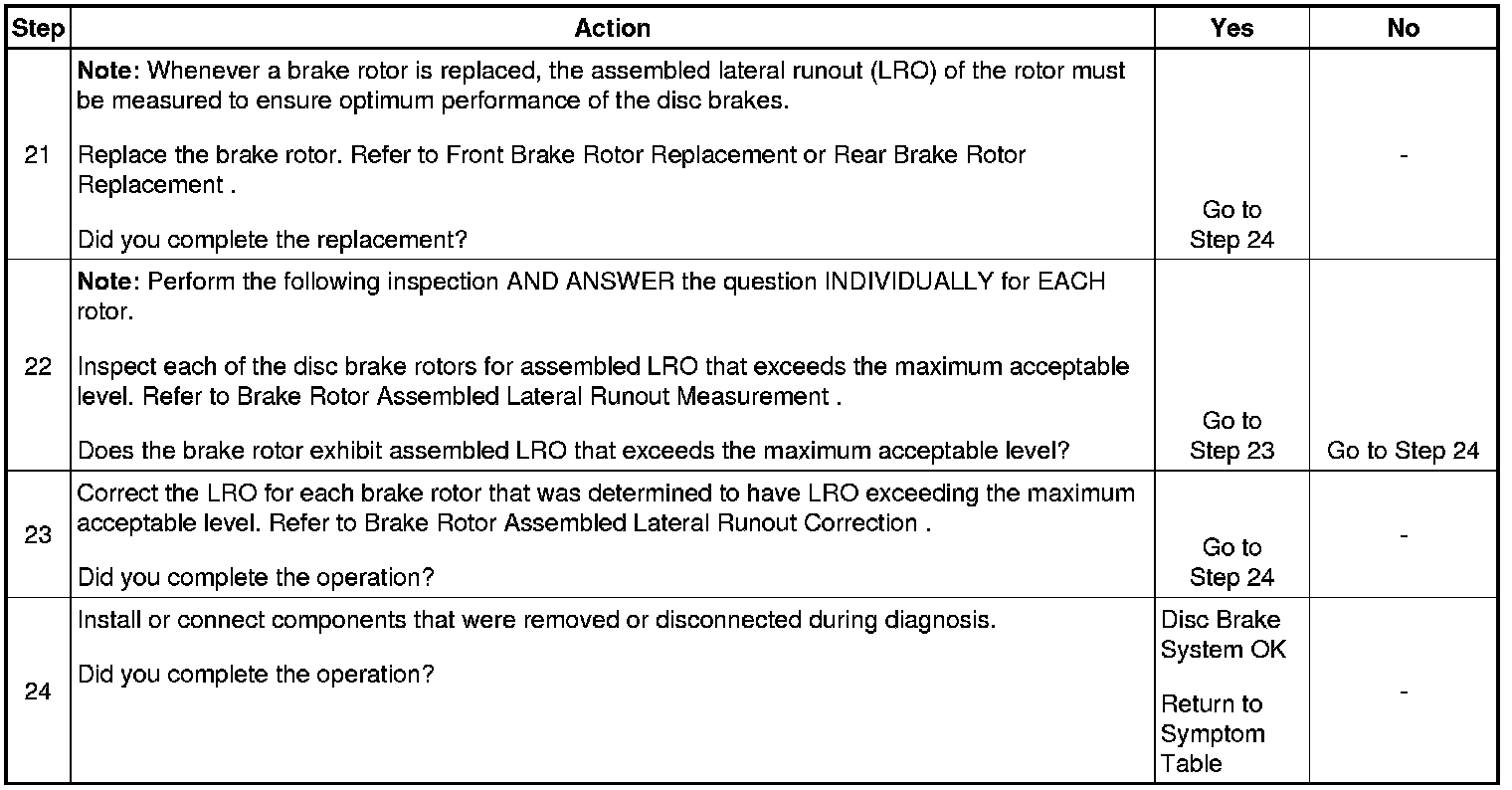22. Disc brake rotor assembled lateral runout (LRO) that exceeds the maximum acceptable level can lead to thickness variation.