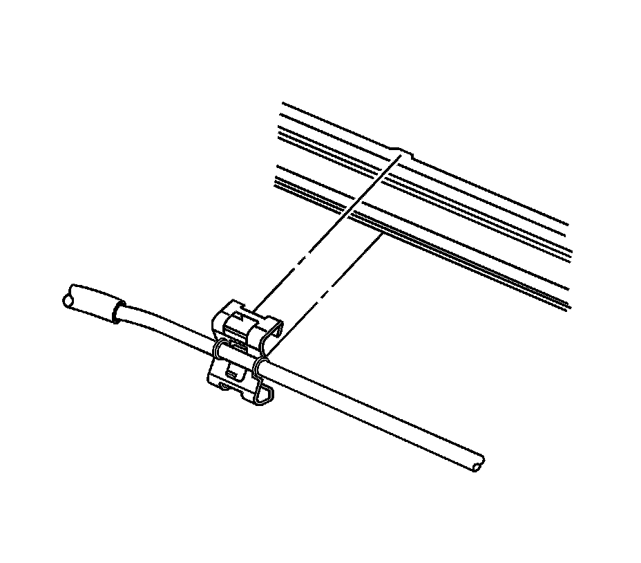 4. Install the park brake cable to the track bar and secure in place with the clips. Verify the clips are installed between the locators on the track bar (1500 series).
