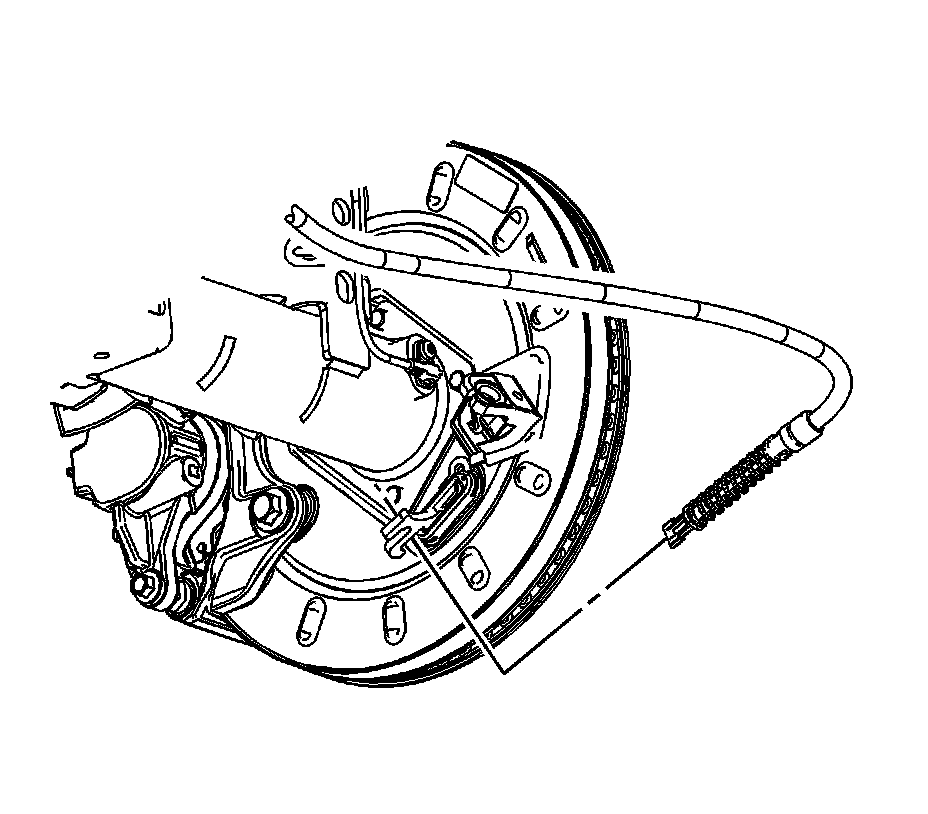 Note: After installing the cable to the rear axle holding clip, verify the clip is securely retaining the cable. If not, crimp the clip by hand taking care not to pinch or kink the cable.