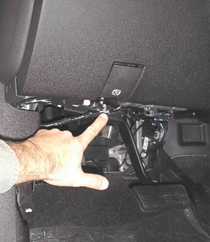 1. Locate the red/black wire, looped and taped to the chassis harness, below the brake master cylinder.