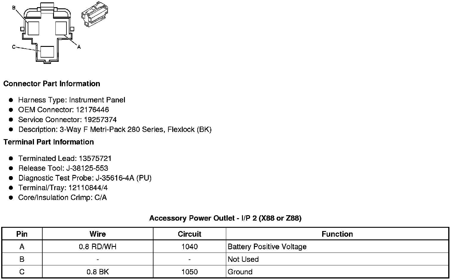 Accessory Power Outlet - I/P 2 (X88 or Z88)