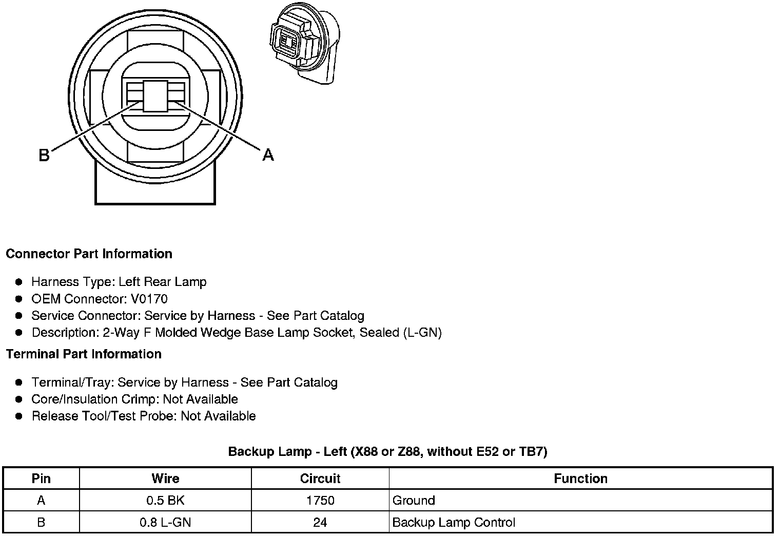 Backup Lamp - Left (X88 or Z88, without E52 or TB7)