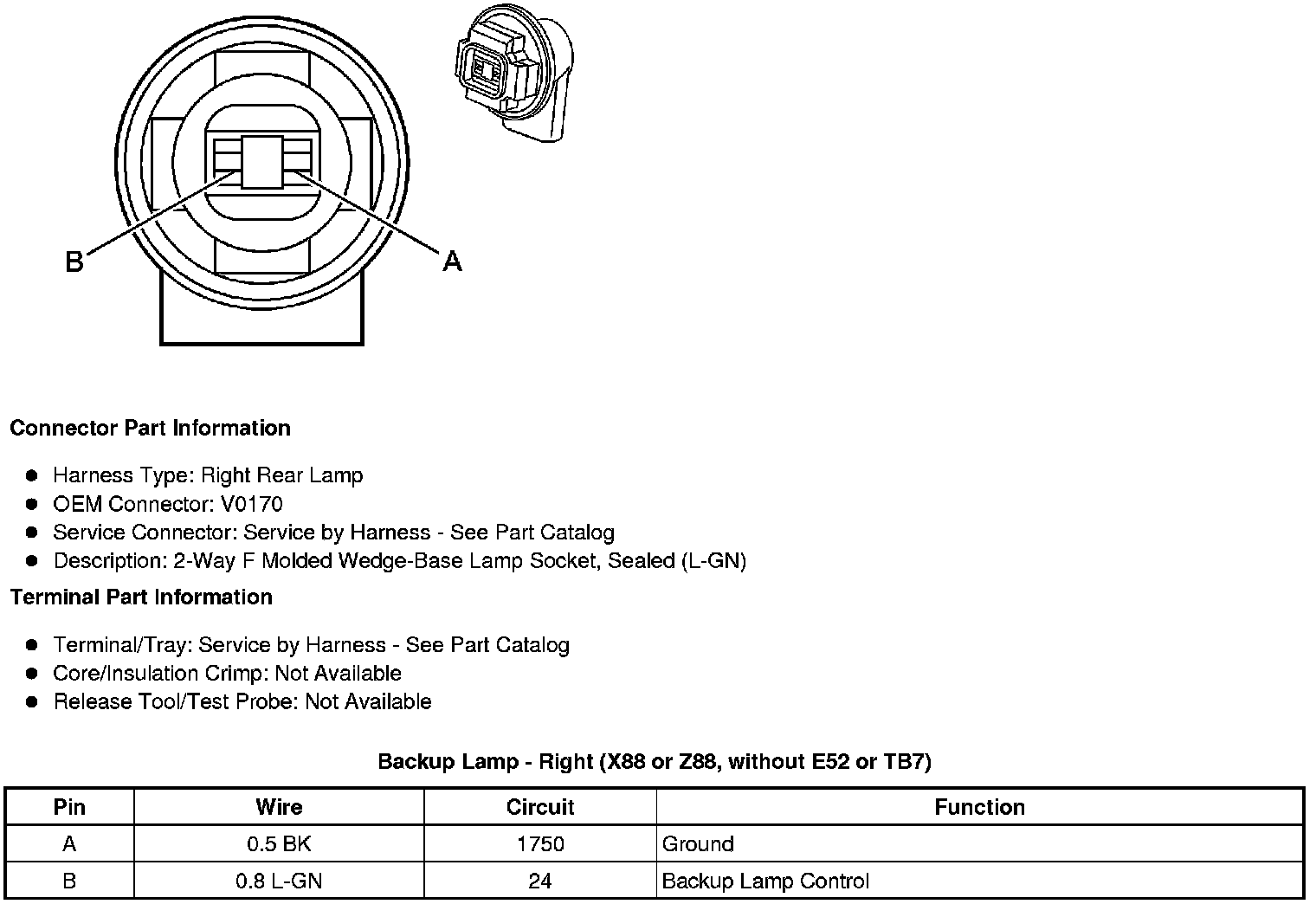 Backup Lamp - Right (X88 or Z88, without E52 or TB7)