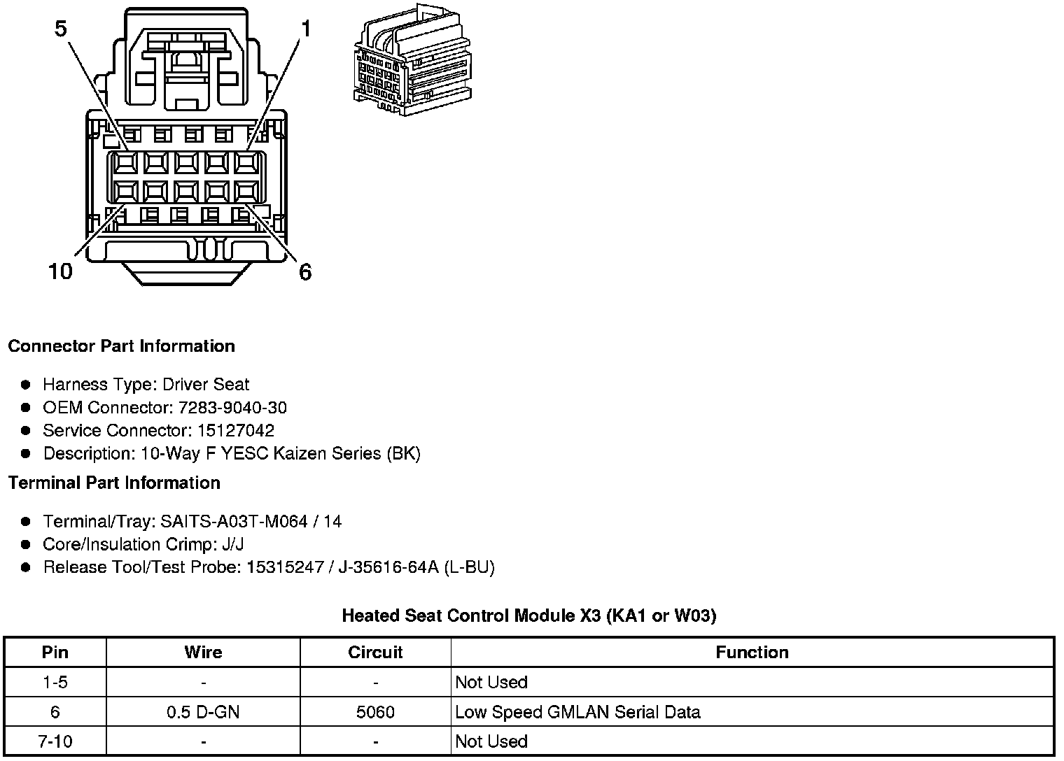 Heated Seat Control Module X3 (KA1 or W03)