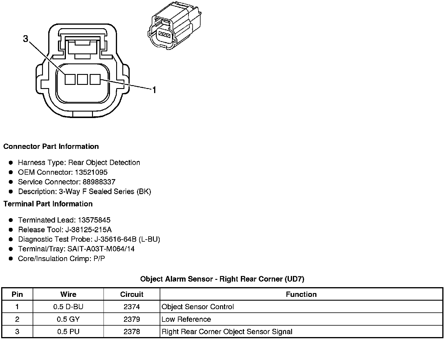 Object Alarm Sensor - Right Rear Corner (UD7)