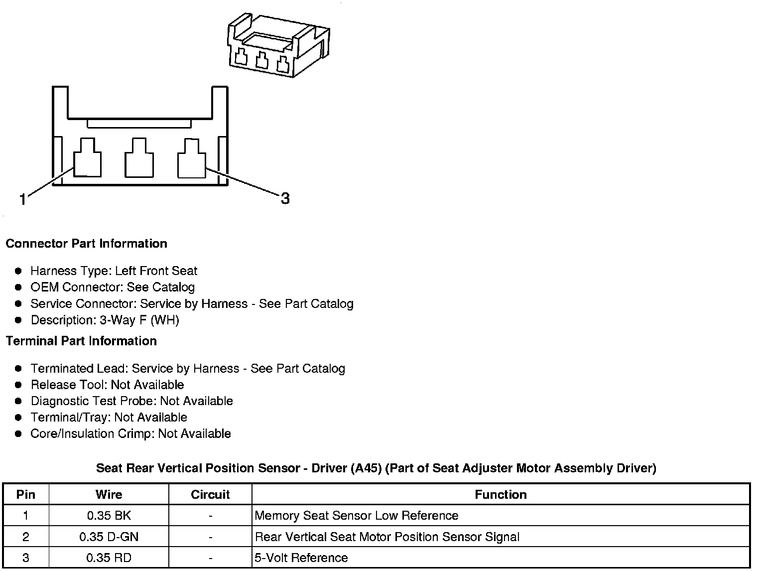 Seat Rear Vertical Position Sensor - Driver (A45) (Part of Seat Adjuster Motor Assembly Driver)