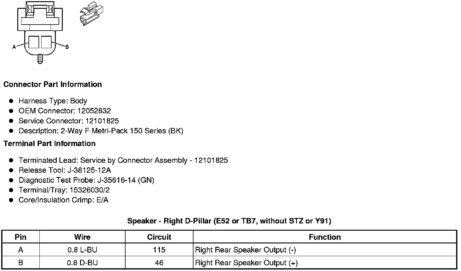 Speaker - Right D-Pillar (E52 or TB7, without STZ or Y91)