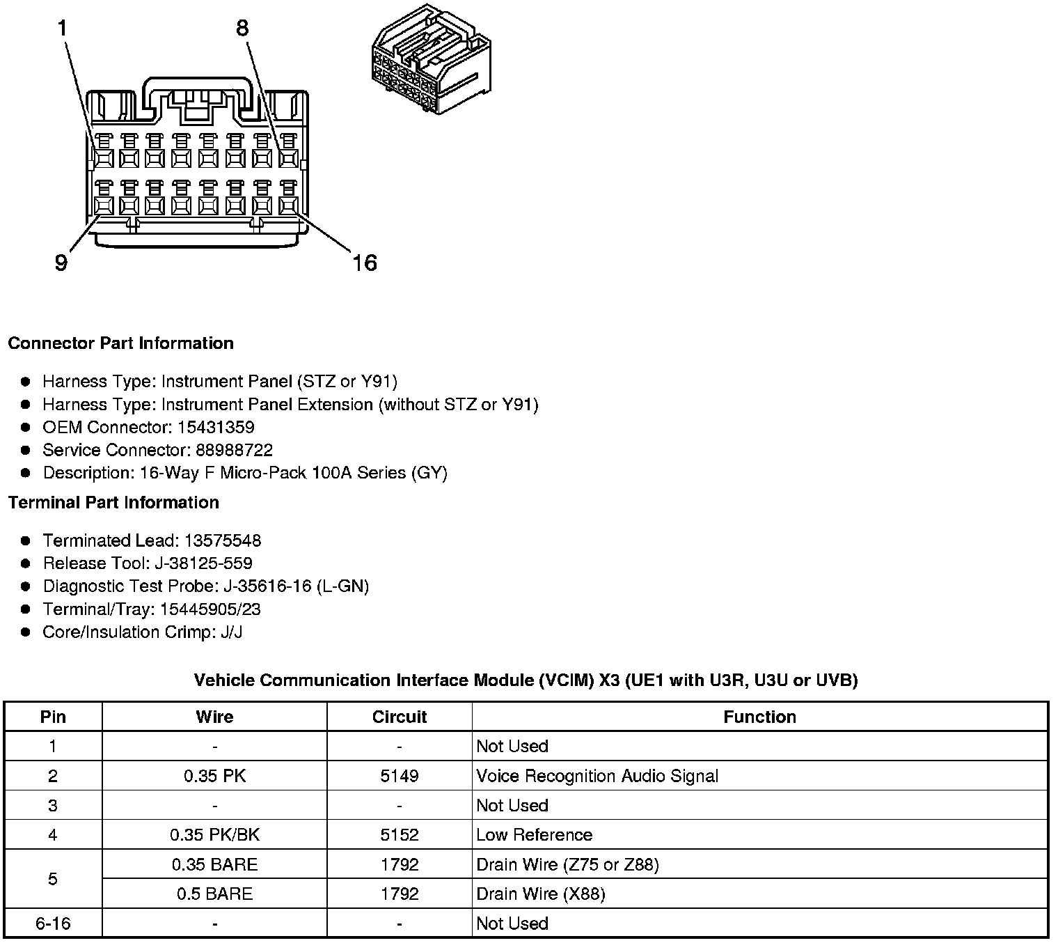 Vehicle Communication Interface Module (VCIM) X3 (UE1 with U3R, U3U or UVB)