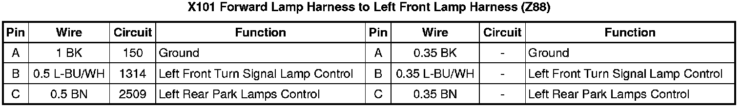X101 Forward Lamp Harness to Left Front Lamp Harness (Z88)