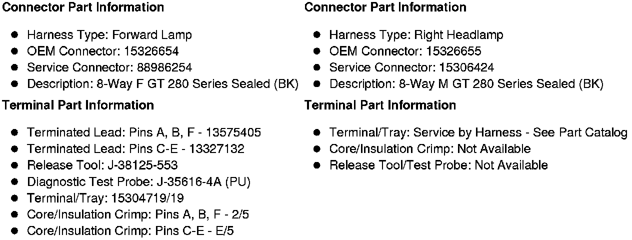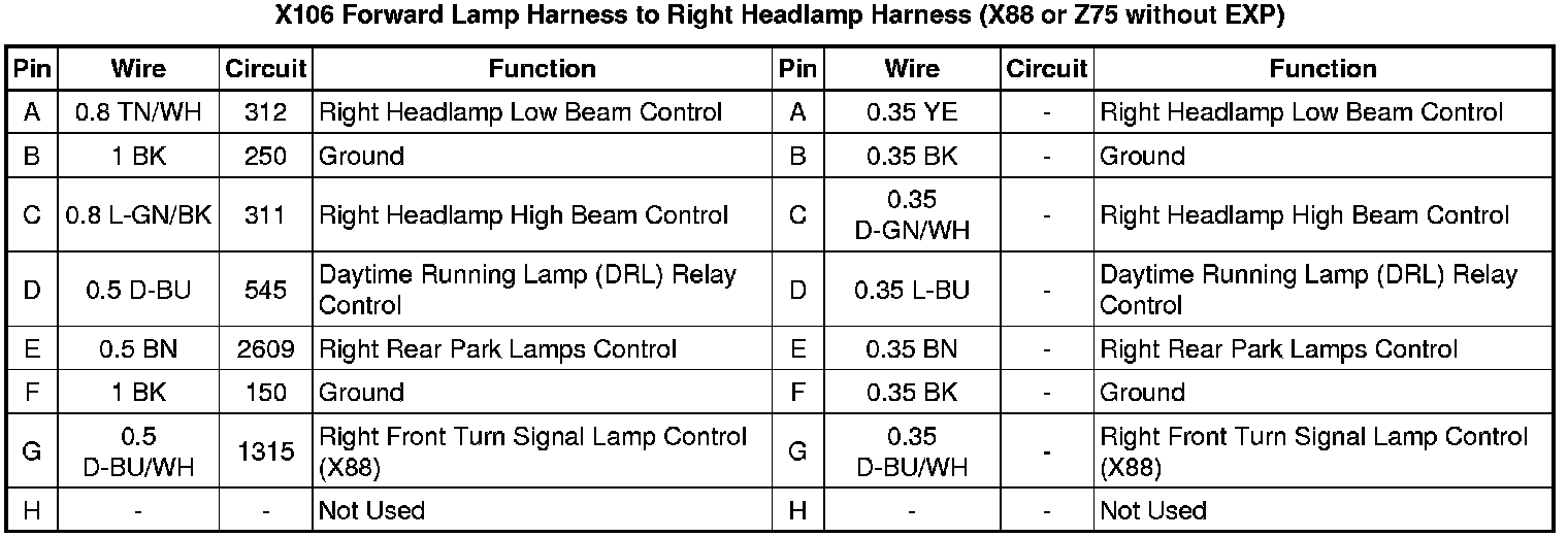 X106 Forward Lamp Harness to Right Headlamp Harness (X88 or Z75 without EXP)