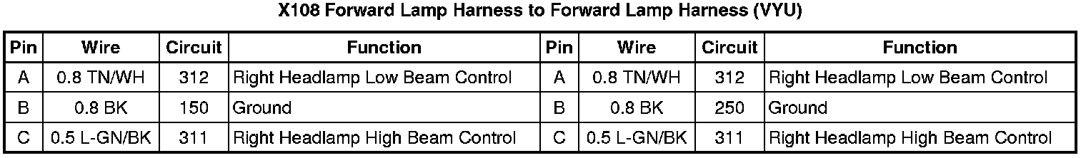 X108 Forward Lamp Harness to Forward Lamp Harness (VYU)