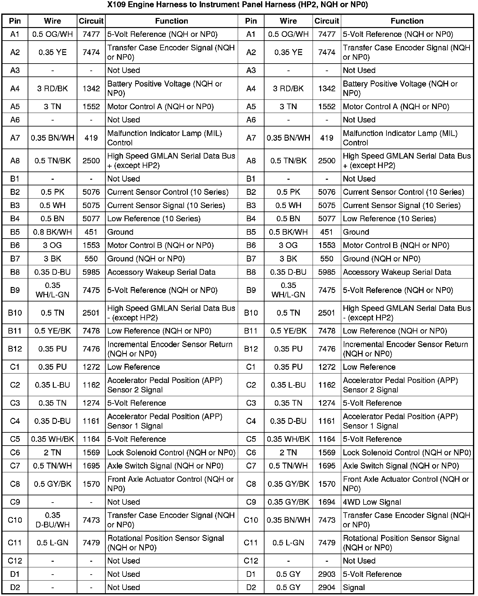 X109 Engine Harness to Instrument Panel Harness (HP2, NQH or NP0)