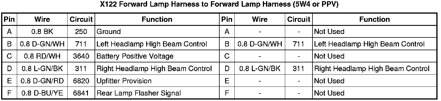 X122 Forward Lamp Harness to Forward Lamp Harness (5W4 or PPV)