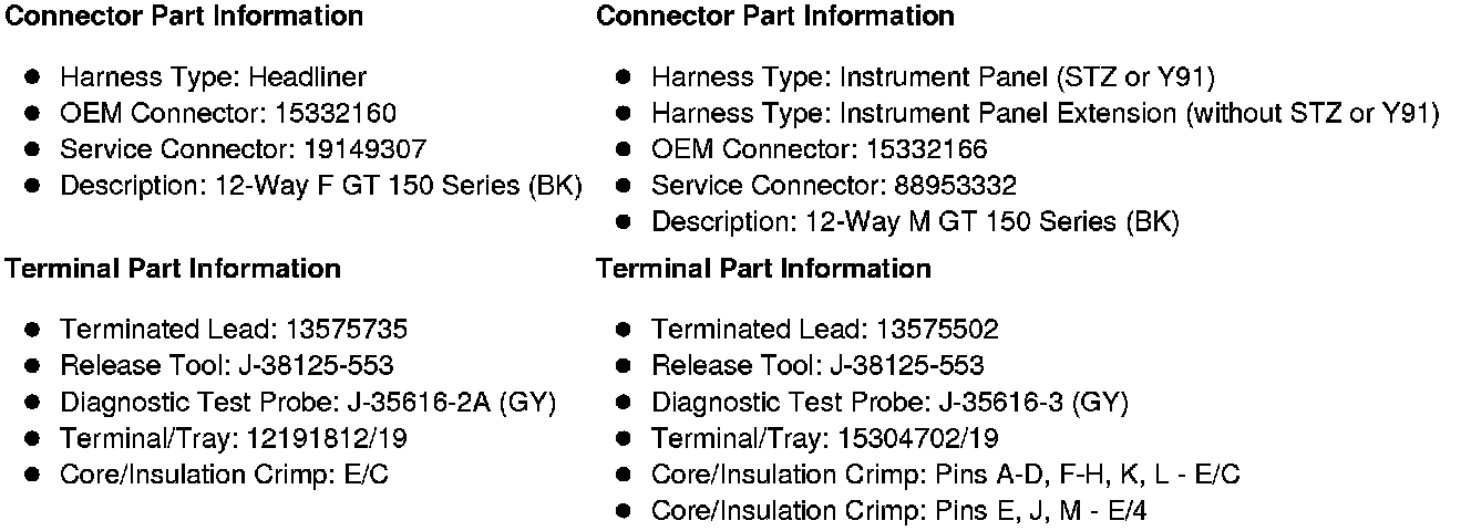 X204 Headliner Harness (U42) to Instrument Panel Harness (STZ or Y91) or Instrument Panel Extension Harness (without STZ or Y91