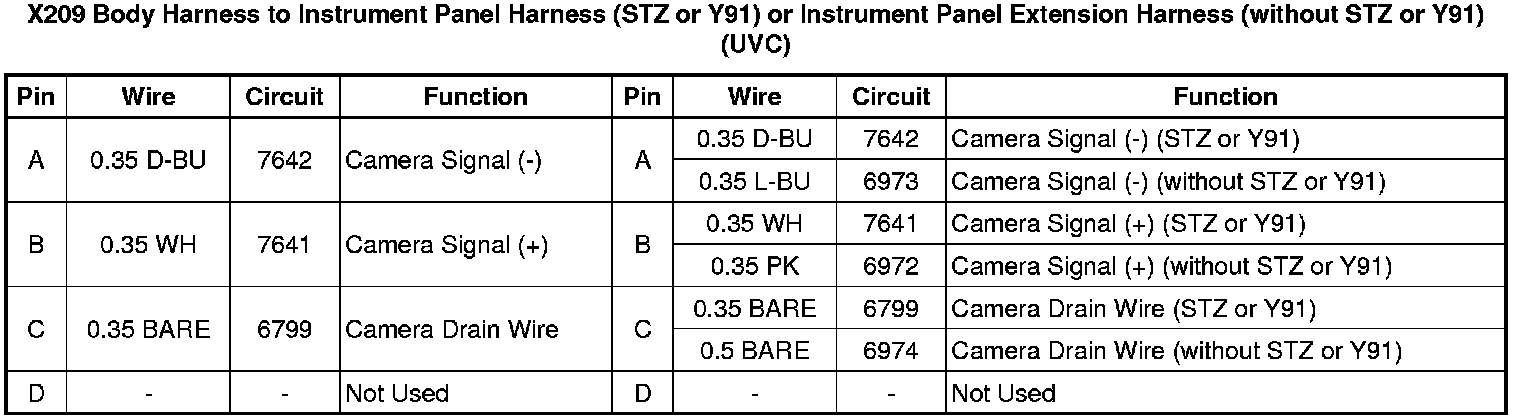 X209 Body Harness to Instrument Panel Harness (STZ or Y91) or Instrument Panel Extension Harness (without STZ or Y91) (UVC)