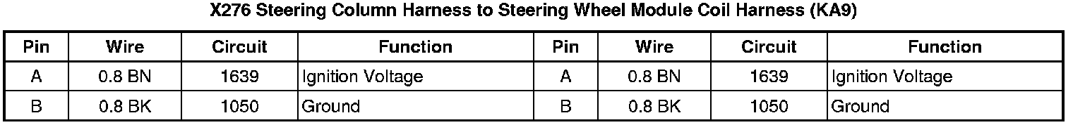 X276 Steering Column Harness to Steering Wheel Module Coil Harness (KA9)