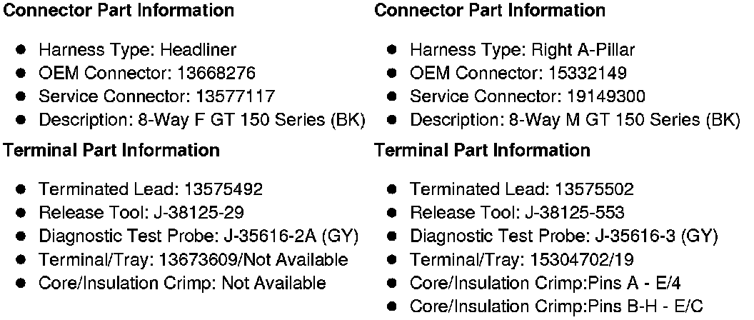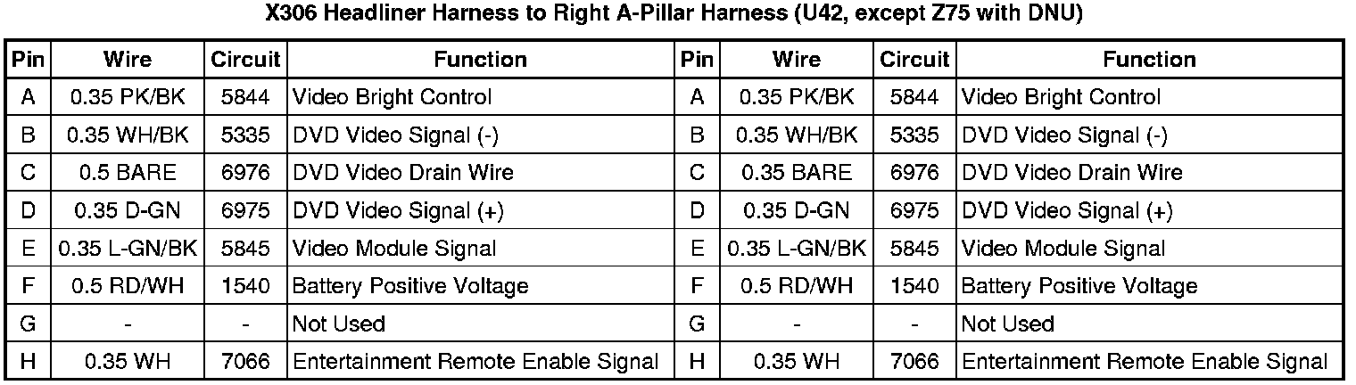 X306 Headliner Harness to Right A-Pillar Harness (U42, except Z75 with DNU)