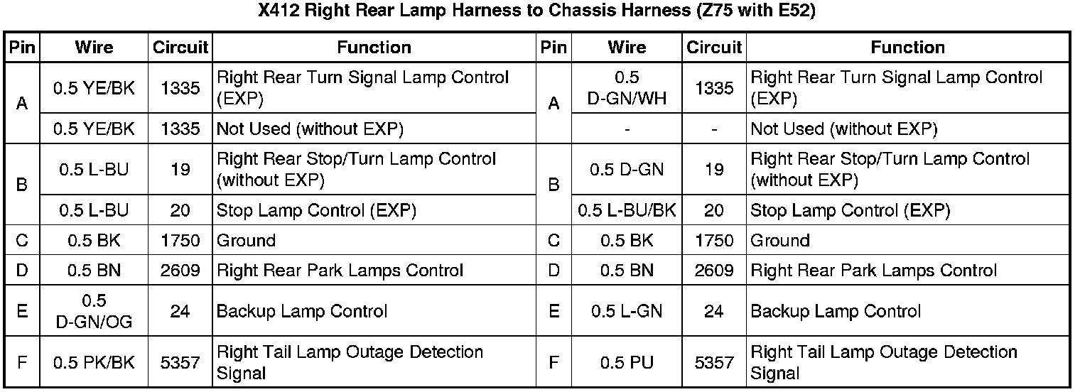 X412 Right Rear Lamp Harness to Chassis Harness (Z75 with E52)