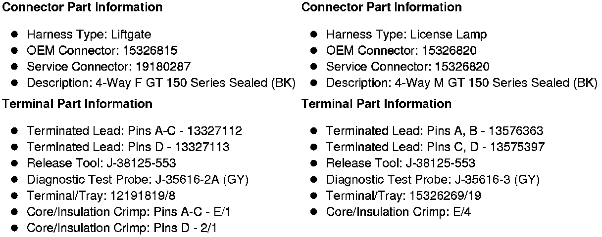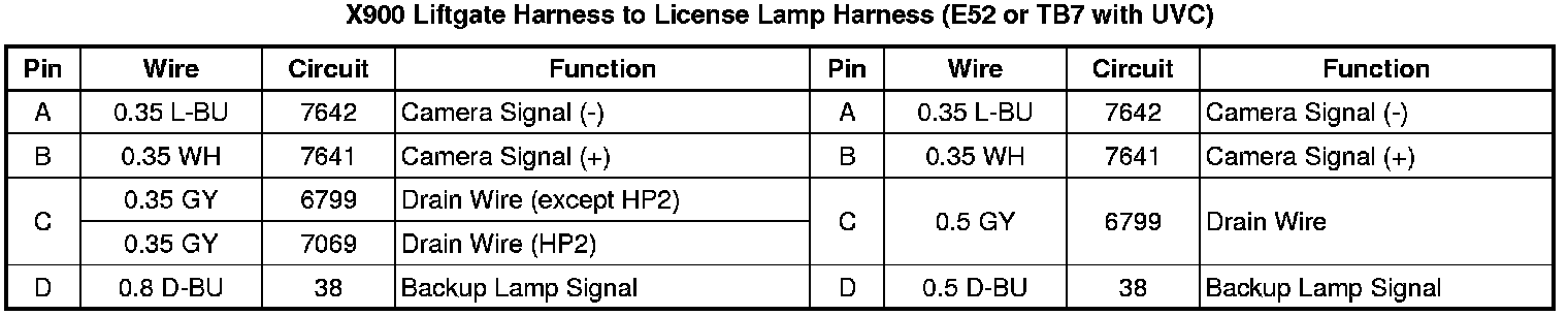 X900 Liftgate Harness to License Lamp Harness (E52 or TB7 with UVC)