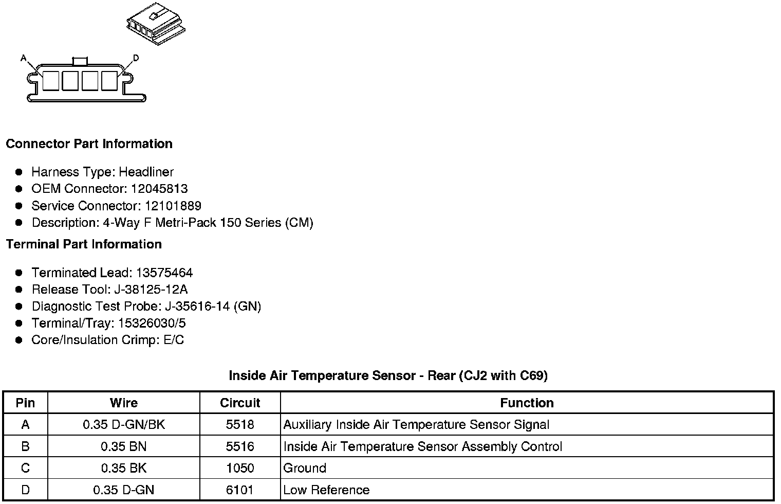 Inside Air Temperature Sensor - Rear (CJ2 with C69)
