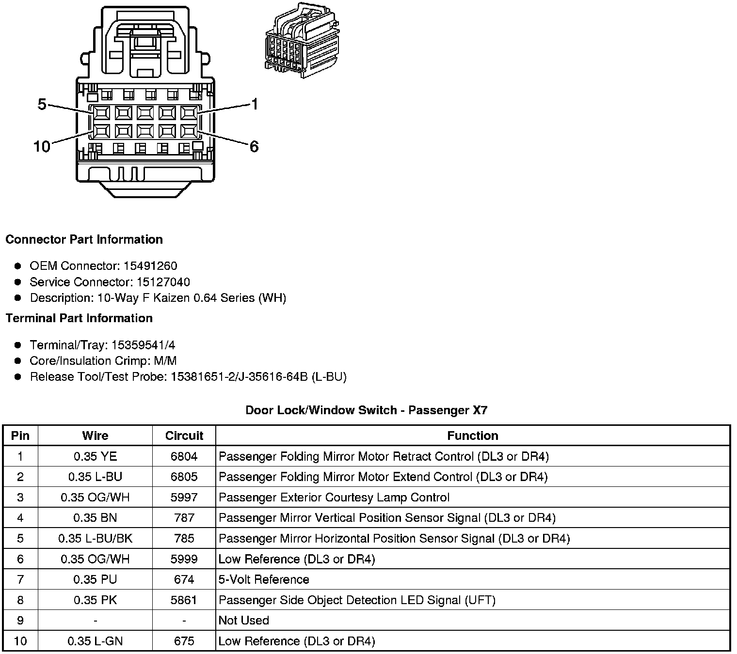 Door Lock/Window Switch - Passenger X7