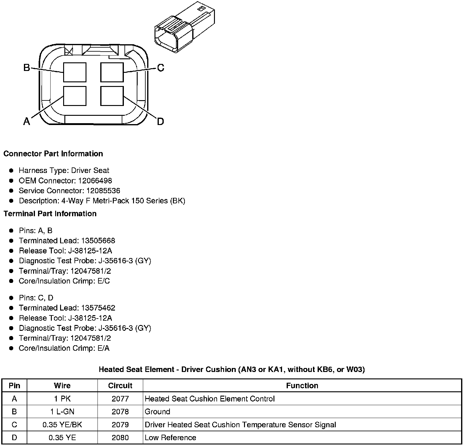 Heated Seat Element - Driver Cushion (AN3 or KA1, without KB6, or W03)