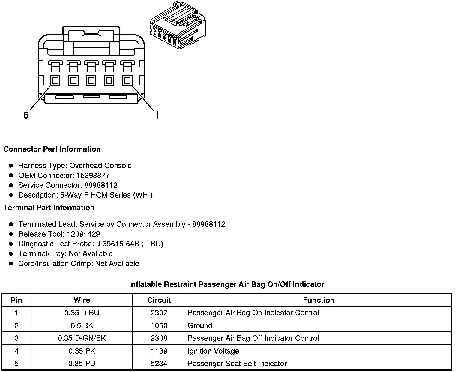 Inflatable Restraint Passenger Air Bag On/Off Indicator
