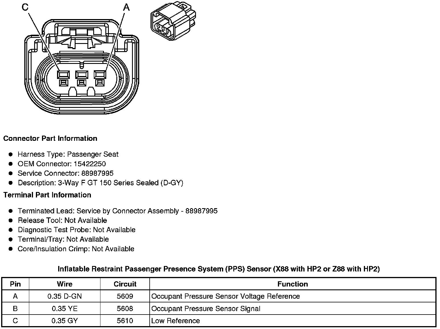 Inflatable Restraint Passenger Presence System (PPS) Sensor (X88 with HP2 or Z88 with HP2)