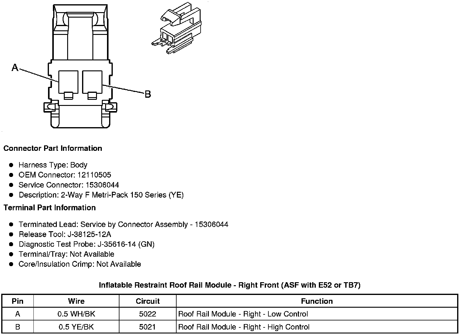 Inflatable Restraint Roof Rail Module - Right Front (ASF with E52 or TB7)