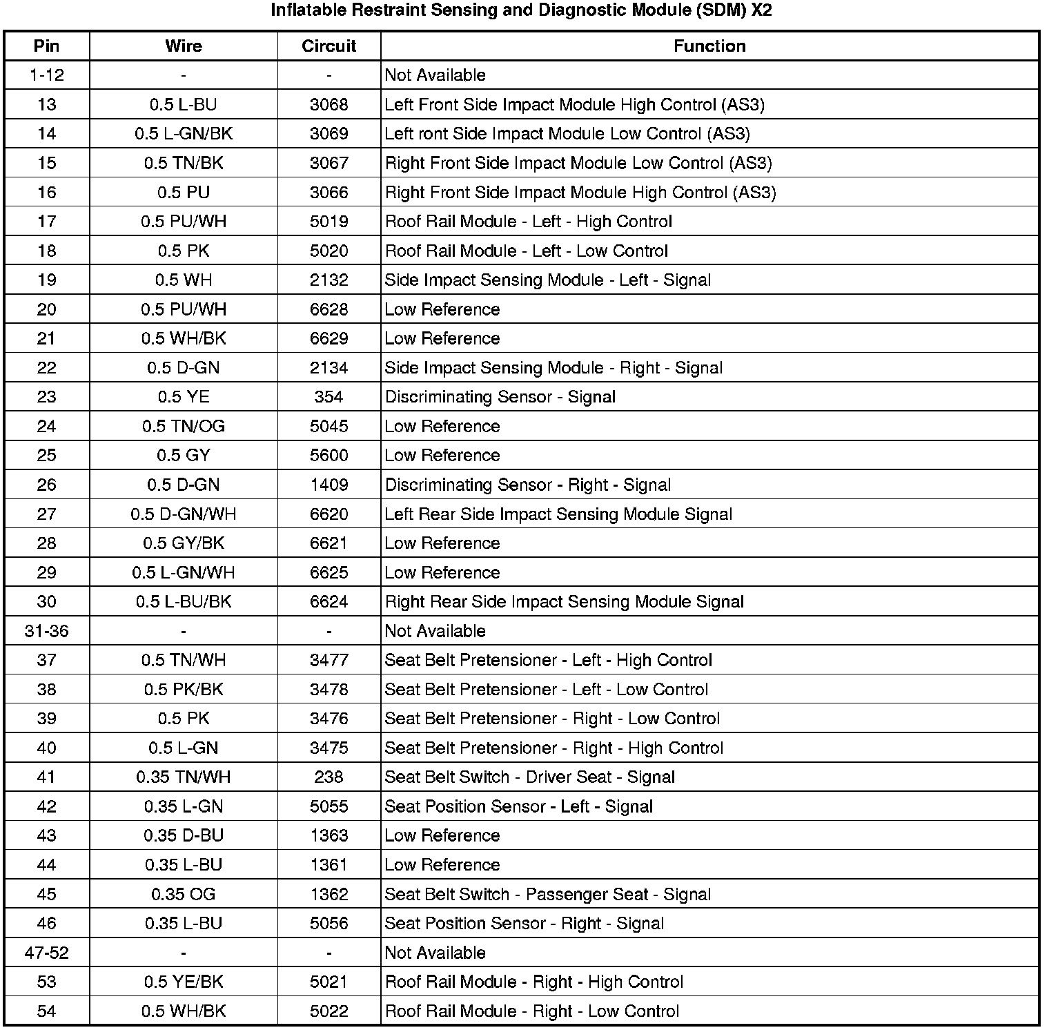 Inflatable Restraint Sensing and Diagnostic Module (SDM) X2