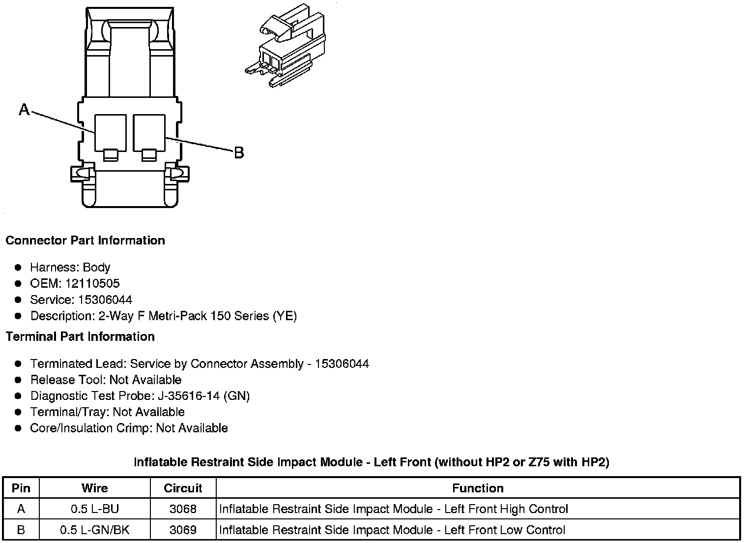 Inflatable Restraint Side Impact Module - Left Front (without HP2 or Z75 with HP2)