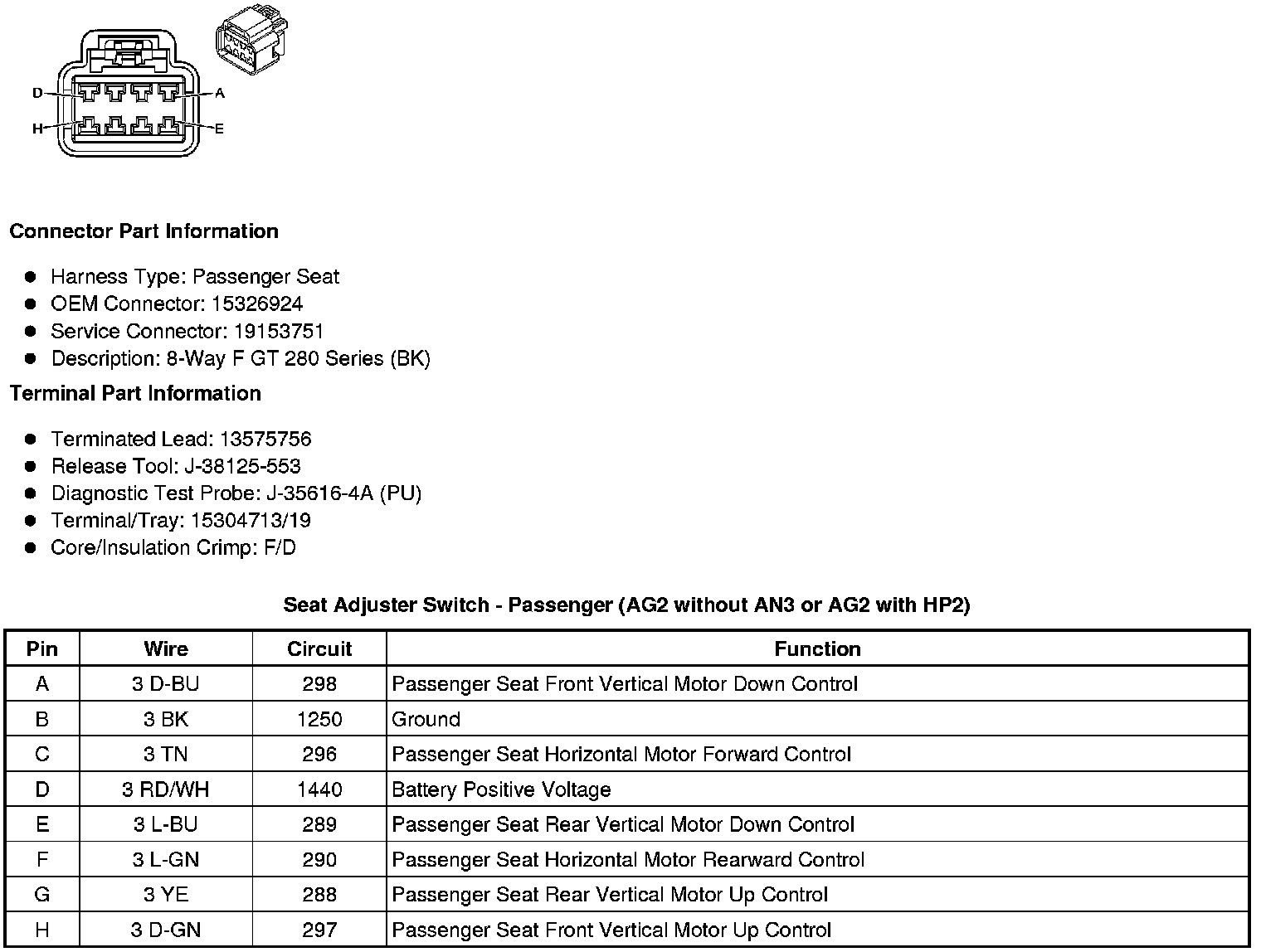 Seat Adjuster Switch - Passenger (AG2 without AN3 or AG2 with HP2)