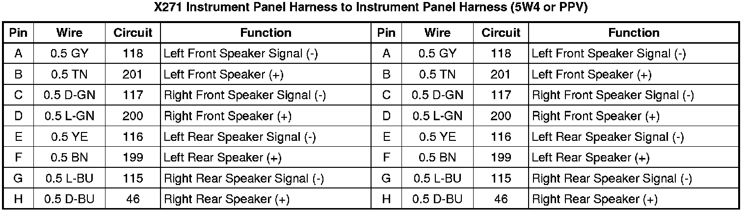 X271 Instrument Panel Harness to Instrument Panel Harness (5W4 or PPV)