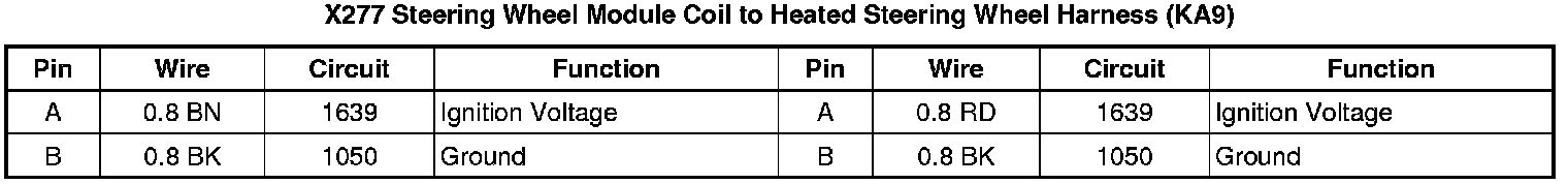 X277 Steering Wheel Module Coil to Heated Steering Wheel Harness (KA9)