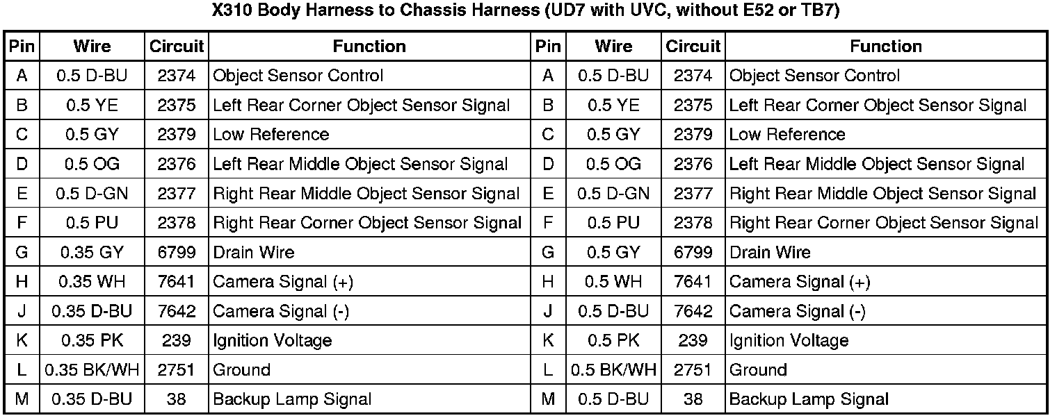 X310 Body Harness to Chassis Harness (UD7 with UVC, without E52 or TB7)