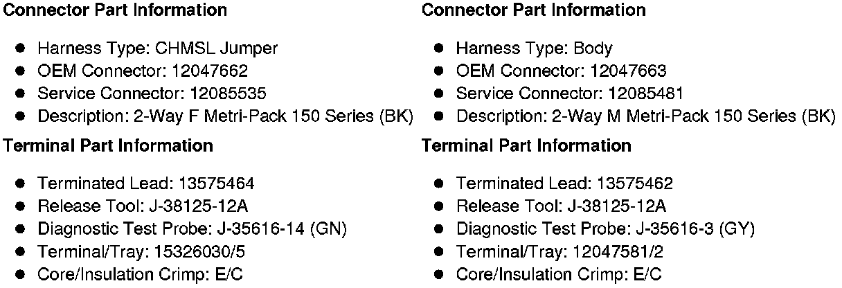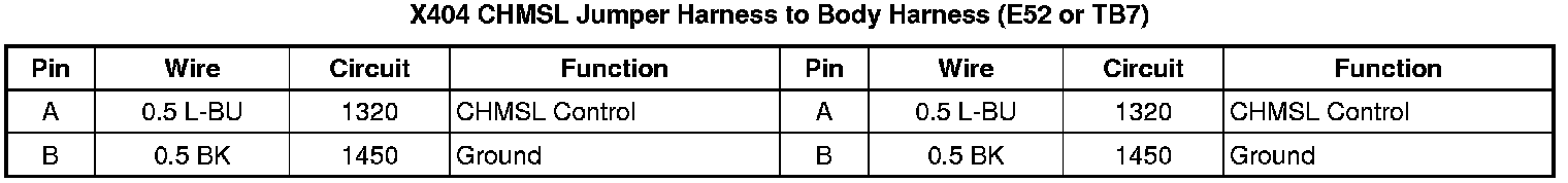 X404 CHMSL Jumper Harness to Body Harness (E52 or TB7)
