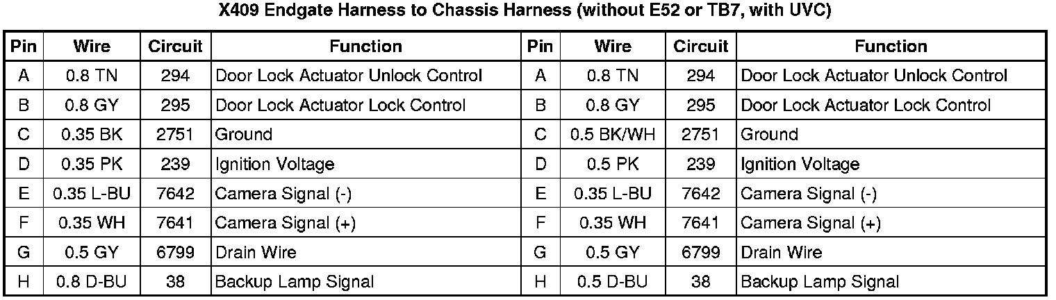 X409 Endgate Harness to Chassis Harness (without E52 or TB7, with UVC)
