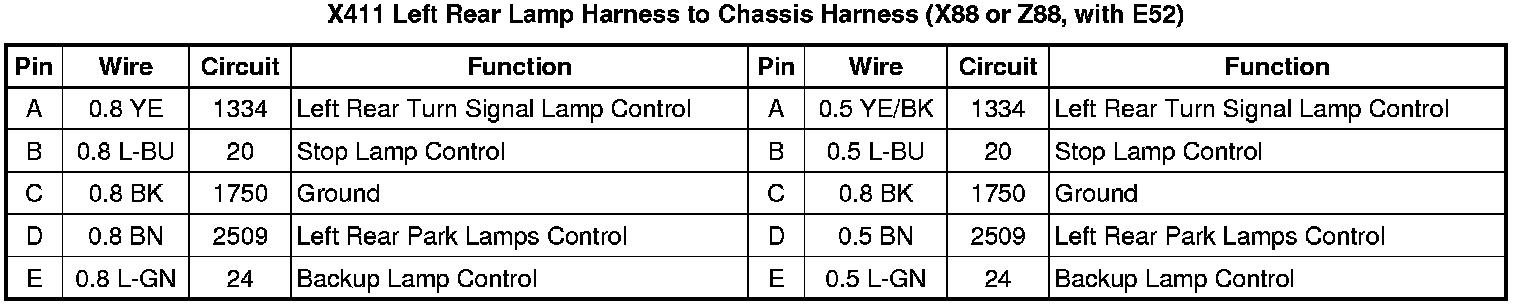 X411 Left Rear Lamp Harness to Chassis Harness (X88 or Z88, with E52)